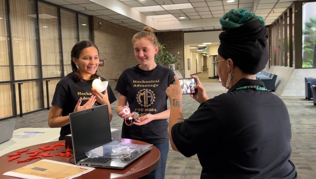 Combining my passions for musical theater and robotics, I developed a theater tech programming course. I used an Arduino microcontroller and an LED light ring to recreate Ursula’s seashell from The Little Mermaid. The seashell lights up when someone speaks into it. I use the light ring to teach students C++ programming by learning to program the LEDs. I have taught the course to hundreds of San Diego children over the last 2 years, and I was recognized on FOX 5 News.